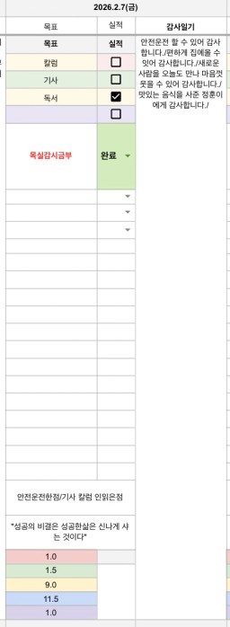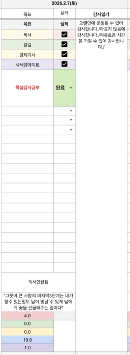2/7~8(토~일) 목표실적 감사일기