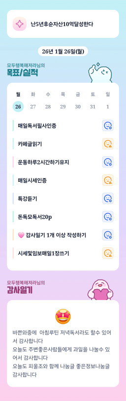 26년모두행복해져라 목실감 감사일기 매일쓰기
