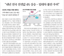 [윤이짜장] 기사, 내년 전국 전셋값 4% 상승 전망...
