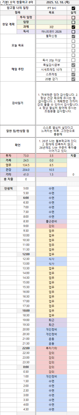 [홍드림] 12/18실적 및 12/19목표, 감사일기