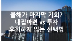 내집마련vs 투자, 가장 현실적인 기준 딱 정해드립니다