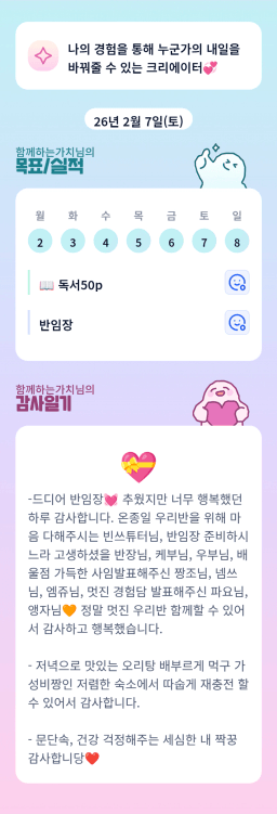 [실전 34기 5조 로레니튜터님과 5를레오 오를레니들_괭이부리말] 2/8 감사일기