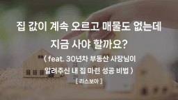 집 값이 계속 오르고 매물도 없는데 지금 사야할까요? ( feat. 30년차 부동산 사장님이 알려주신 내 집 마련 성공 비법 ) [ 리스보아 ]