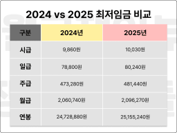 2025년 최저시급 1만 30원. 시급 일급 월급 연봉은 얼마?