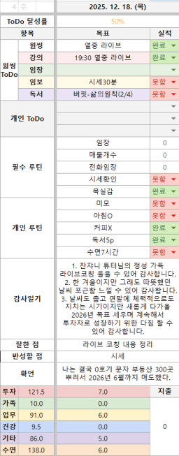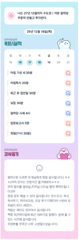 [열중 48기 2번달 독ㄹ6 하나되 조_별을향해쏴라]#12/18 매일목실감