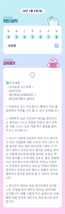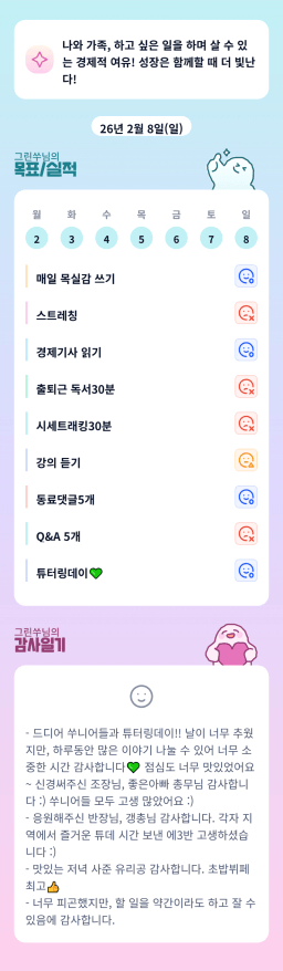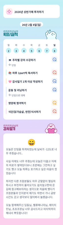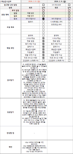 [정의] 2026년 2월 9일 목표, 실적, 감사일기
