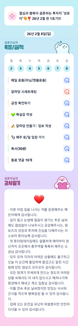 [월부학교 겨울학기 그 겨울, 자향ㅇ1 분다❄️ 여유로운리치] 2026.2.7~8 감사일기