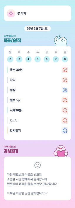 [나무해 월벗] #1380. 26.02.08 목표/실적