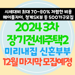 장기전세주택2 3차 12월 모집예정! 신혼부부 반값전세! (+메이플자이, 청계 SK뷰, 힐스테이트 청량리 메트로블 등 500가구 이상 공급, 미리내집)