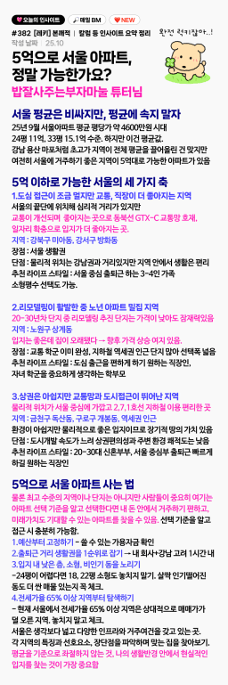 레키 칼럼요약 - 5억으로 서울 아파트, 정말 가능한가요? (밥잘사주는부자마눌 튜터님) #382