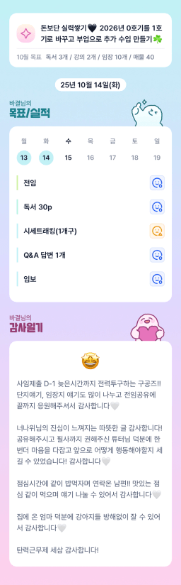 [지투 26기 일어나! 소피ㅇ1튜터님과 등7ㅣ칠 시간이야! 지구의주인은고양이] 251014 목실감