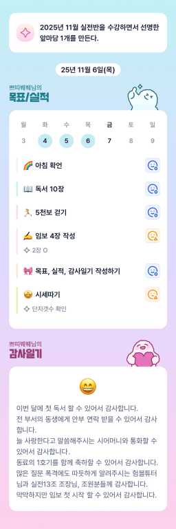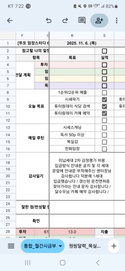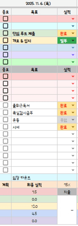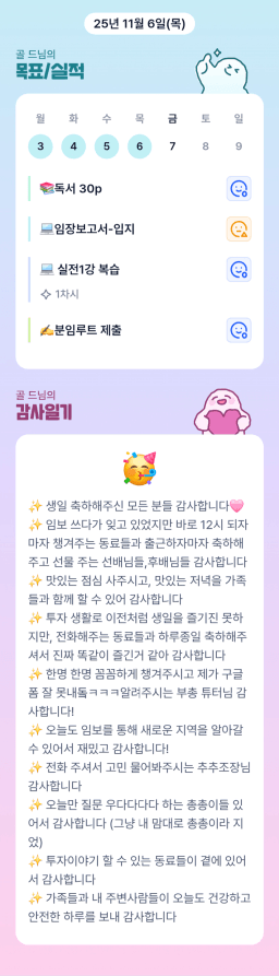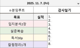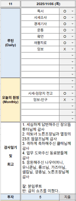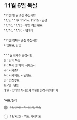 11/6 목표, 실적, 감사일기, 시간가계부 [주시부]