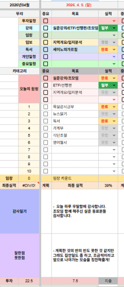 [실준73기 28조 브롬톤]2026.4.5(일)목표실적#1589
