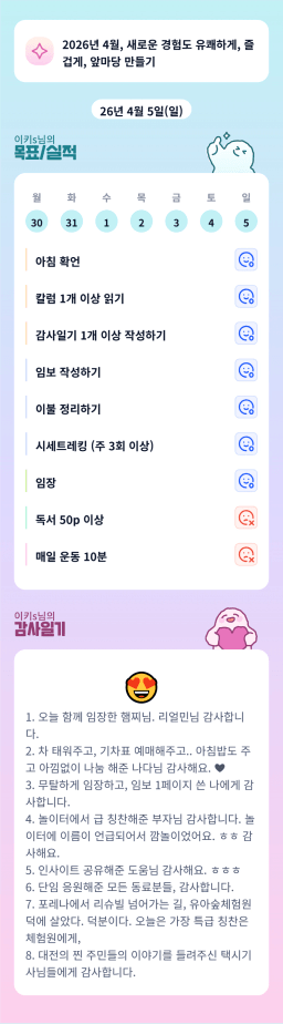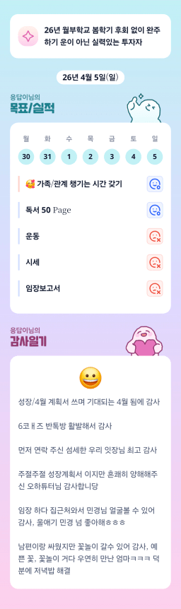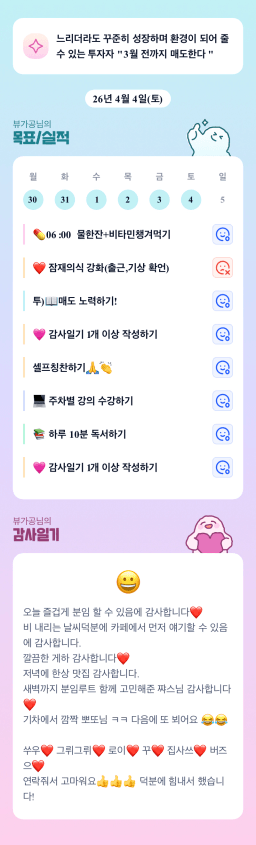 [지투실 28기 일기튜터님과 함께라면 2십4시간이 모자라⏰️-부자꽁냥꽁냥] 4/4~4/5 목실감
