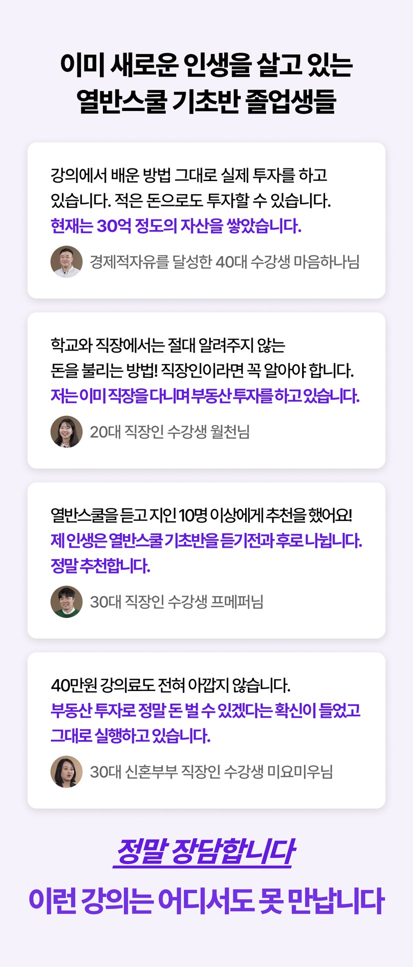 💬 열반스쿨 기초반 듣고 경제적 자유 달성한 40대 수강생 마음하나님 후기!
