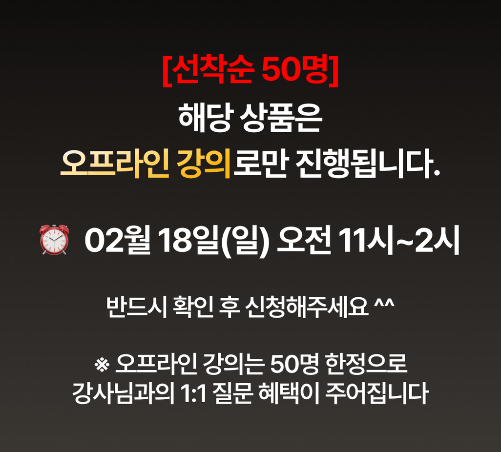 단 50명, 단 하루 오프라인 강의를 통해서만