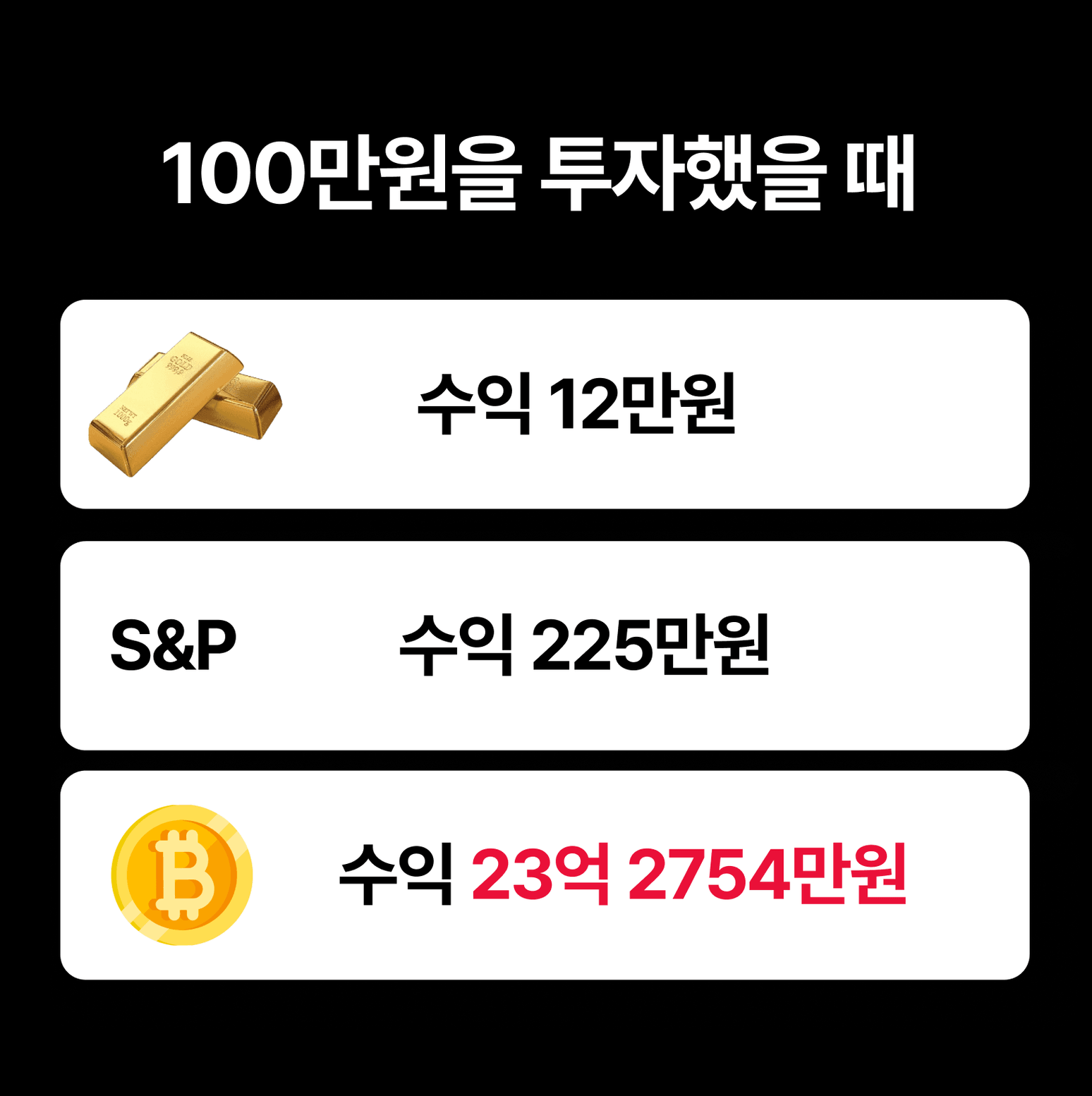 동일하게 100만원을 투자했다고 가정해보면