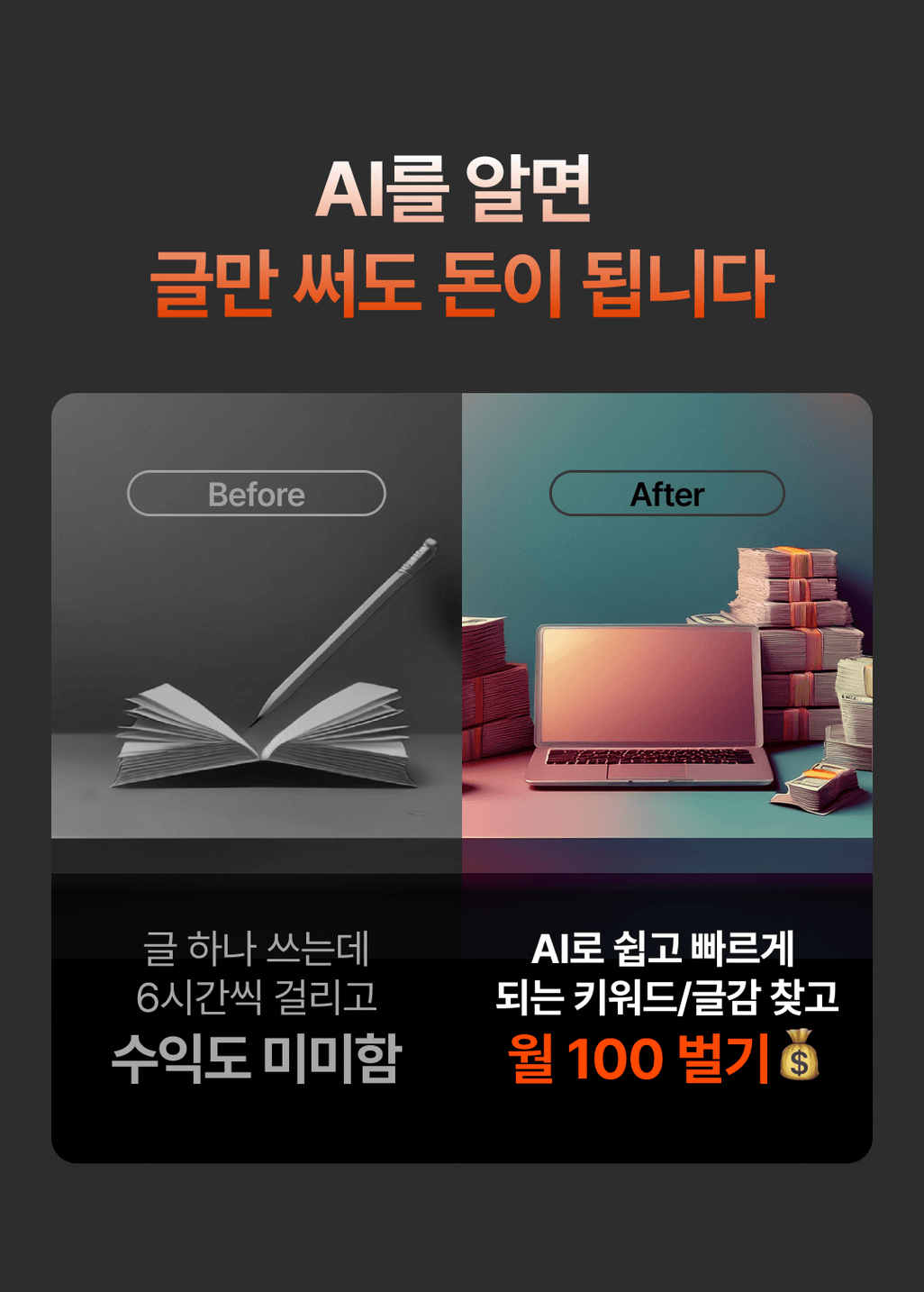 특히, AI로 돈 버는 글쓰는 방법을 터득하시면 블로그 뿐만 아니라