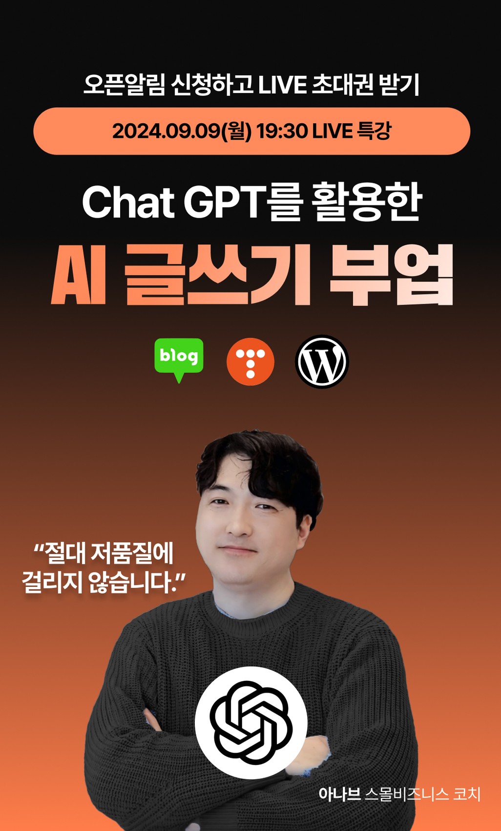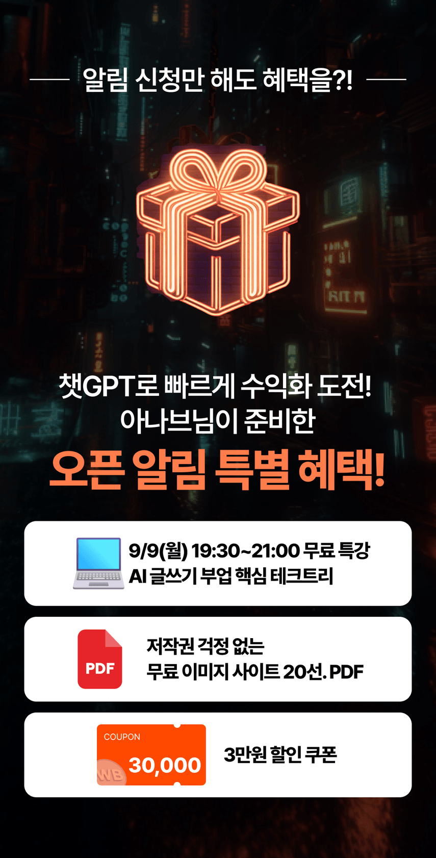 'AI글쓰기 수익화' 무료특강 초대권을 드립니다.