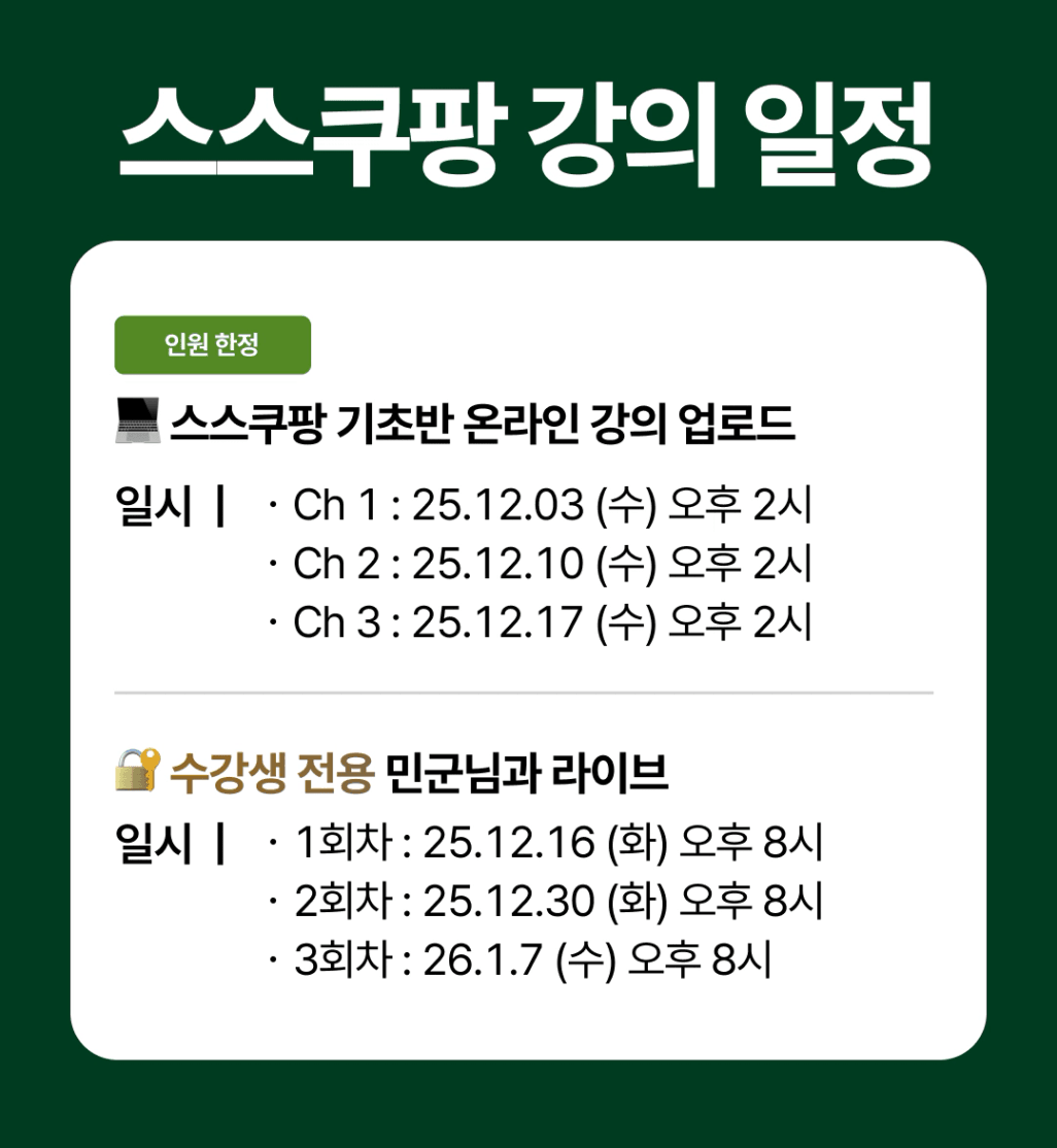 🔔 수강생 단톡방은 12/3 (수) 오후 5시부터 초대 드립니다 :)