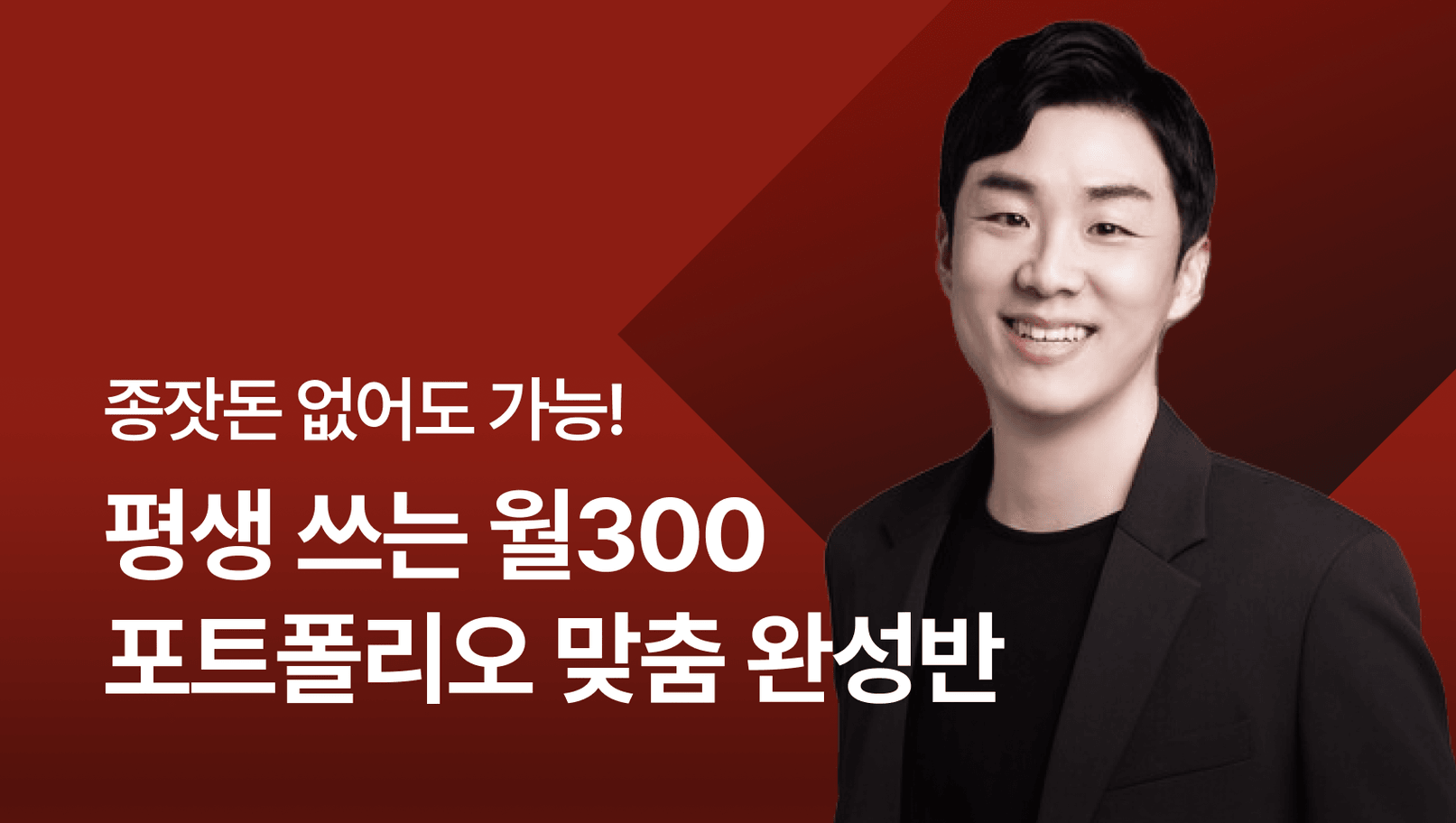 평생쓰는 월300 포트폴리오 맞춤 완성반은 종잣돈이 없는 사람도 조기은퇴, 은퇴 후 월 300이라는 꼭 필요한 현금흐름을 달성하기 위해, 절세와 미국주식 두마리 토끼를 잡아 평생 쓸 포트폴리오를 완성하고 수료하는 강의입니다.