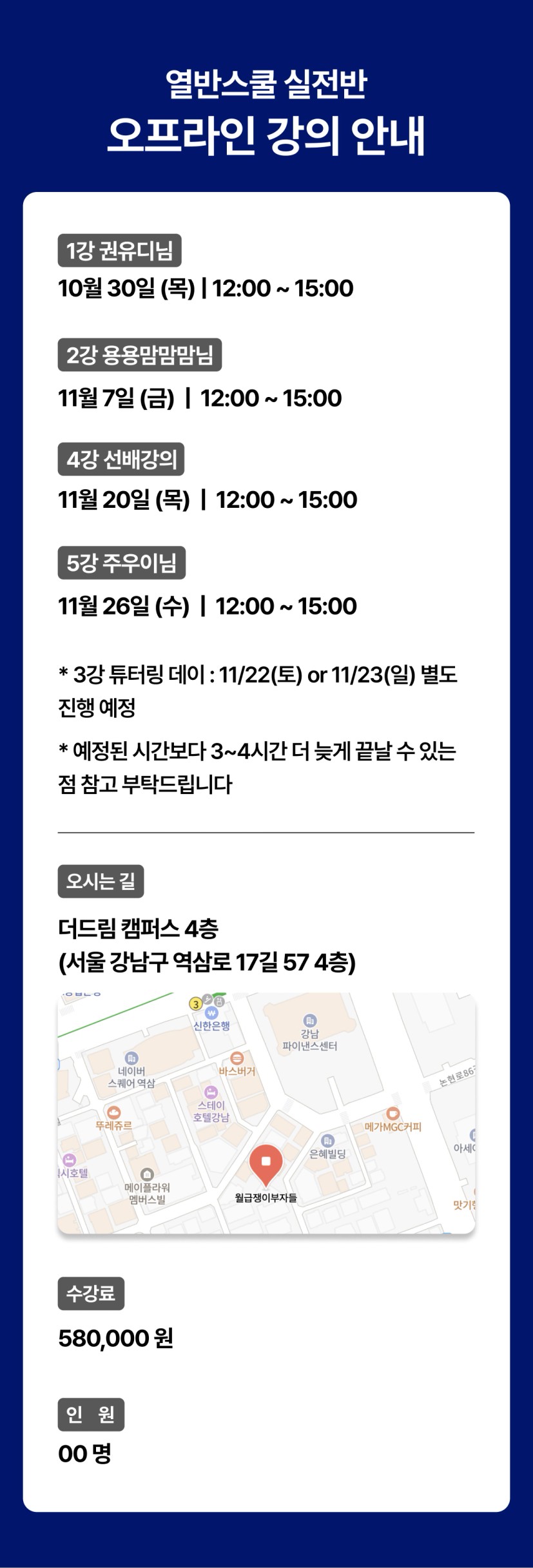 수강 조건 | 중급 수도권, 중급 마스터, 실전, 이사 |