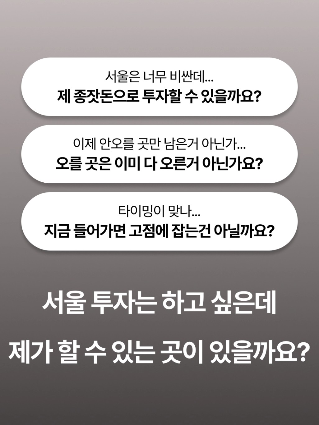 현재 서울시장 진단 및 투자전략 (가치성장 vs 소액투자)