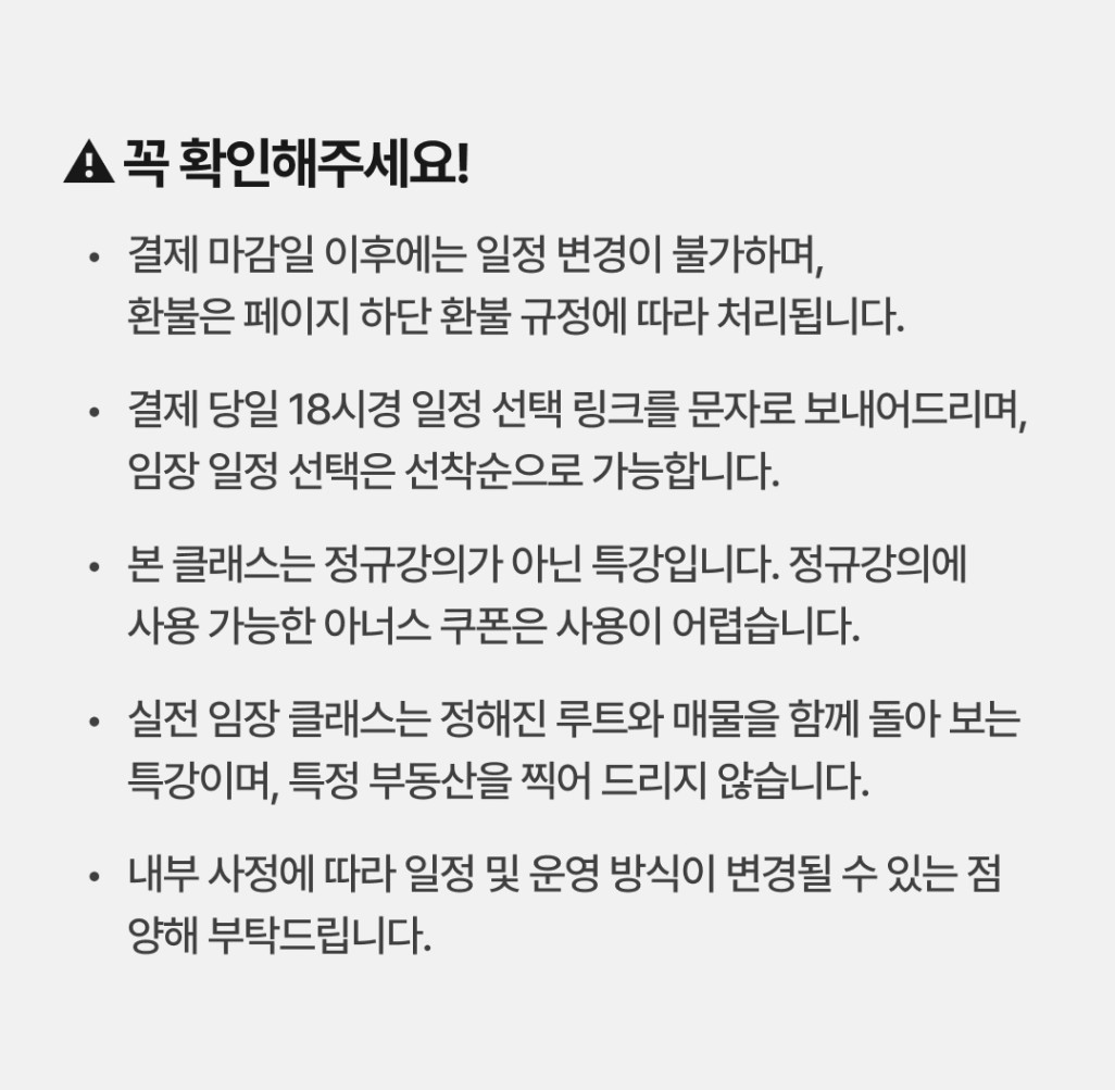 실전반 광클을 실패하고, 아쉬운 마음에 새로 생겼다는 ‘실전 임장 클래스’를 신청 해보았습니다.
