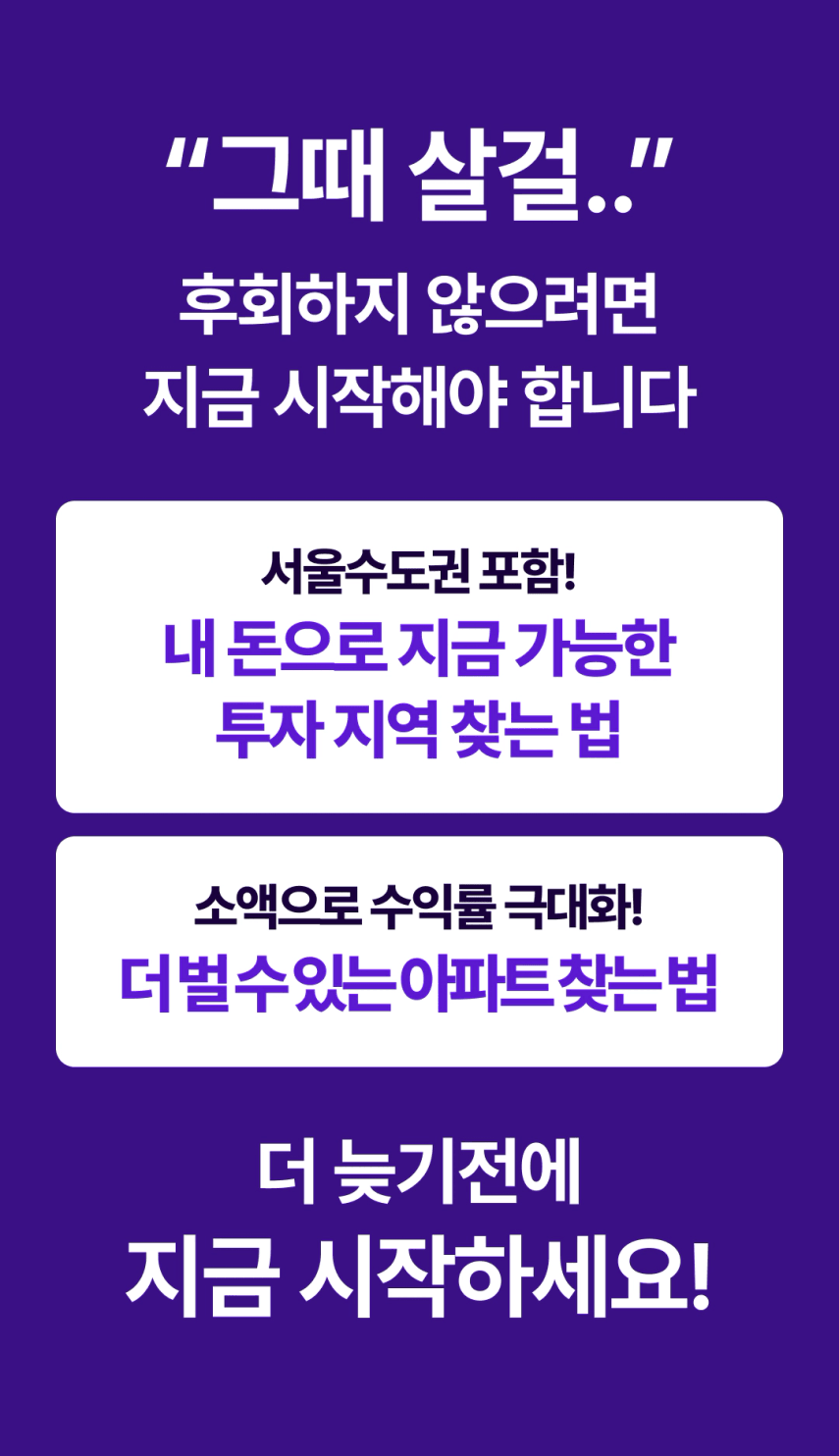 “내집마련 해야될까요? 투자해야 될까요?” “똘똘한 한채가 좋을까요? 분산 투자가 좋을까요?” “가격이 싸고, 투자금이 적으면 다 투자해도 되나요?” “아파트 외 다른 부동산 투자는 어떤가요?” “제가 과연.. 부동산 투자를 할 수 있을까요?”