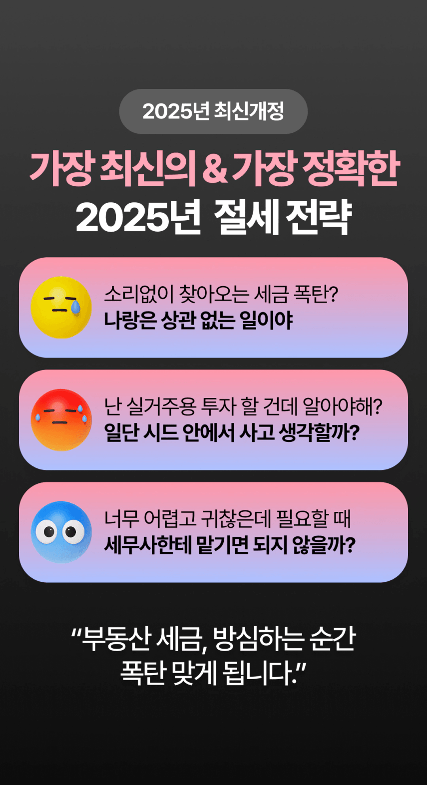 지금 강의를 수강하시면, 가장 빠르게 규제 발표 이후의 바뀐 절세 전략을 확인하실 수 있어요!
