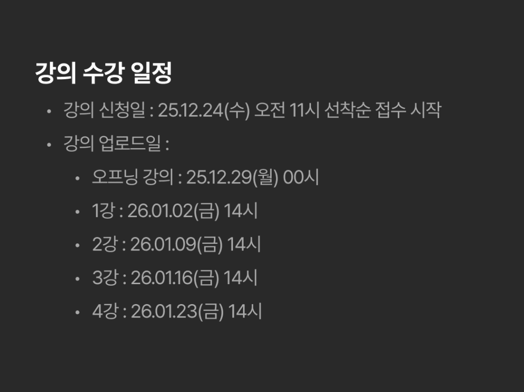 수강 기간49일 (강의시작일 2025-12-29 ~ )