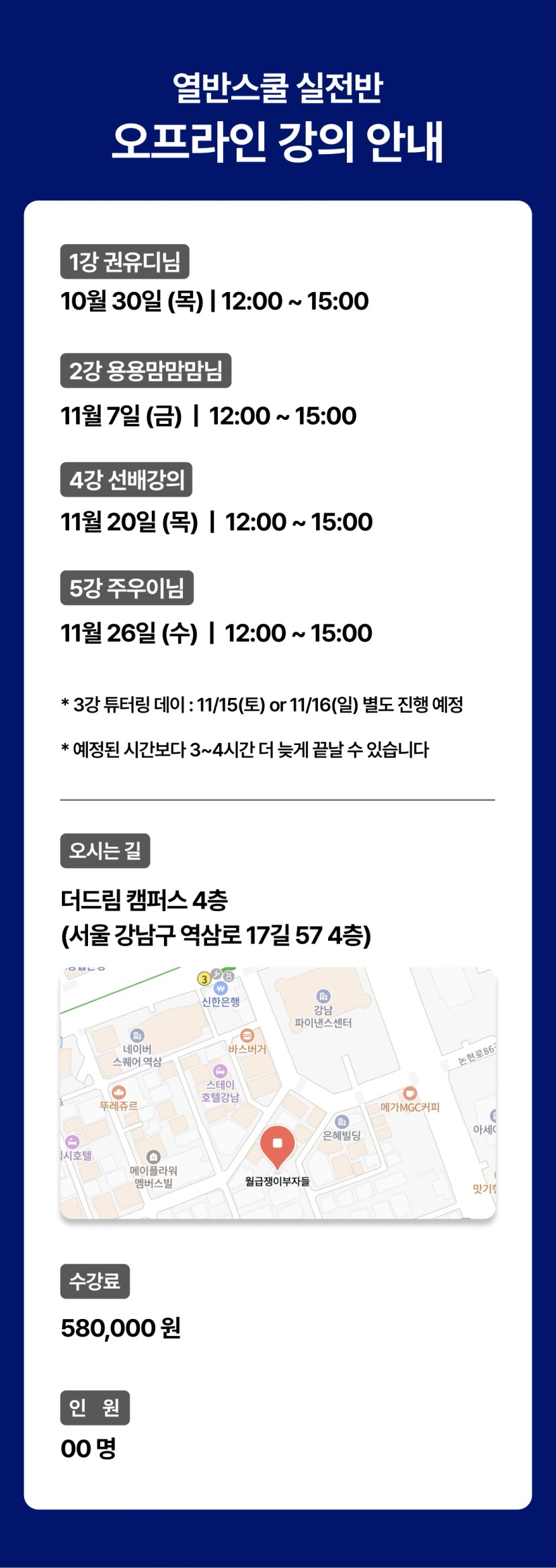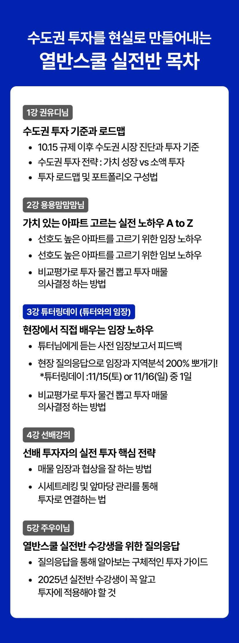 | 수강 조건 | 중급 수도권, 중급 마스터, 실전, 이사 |