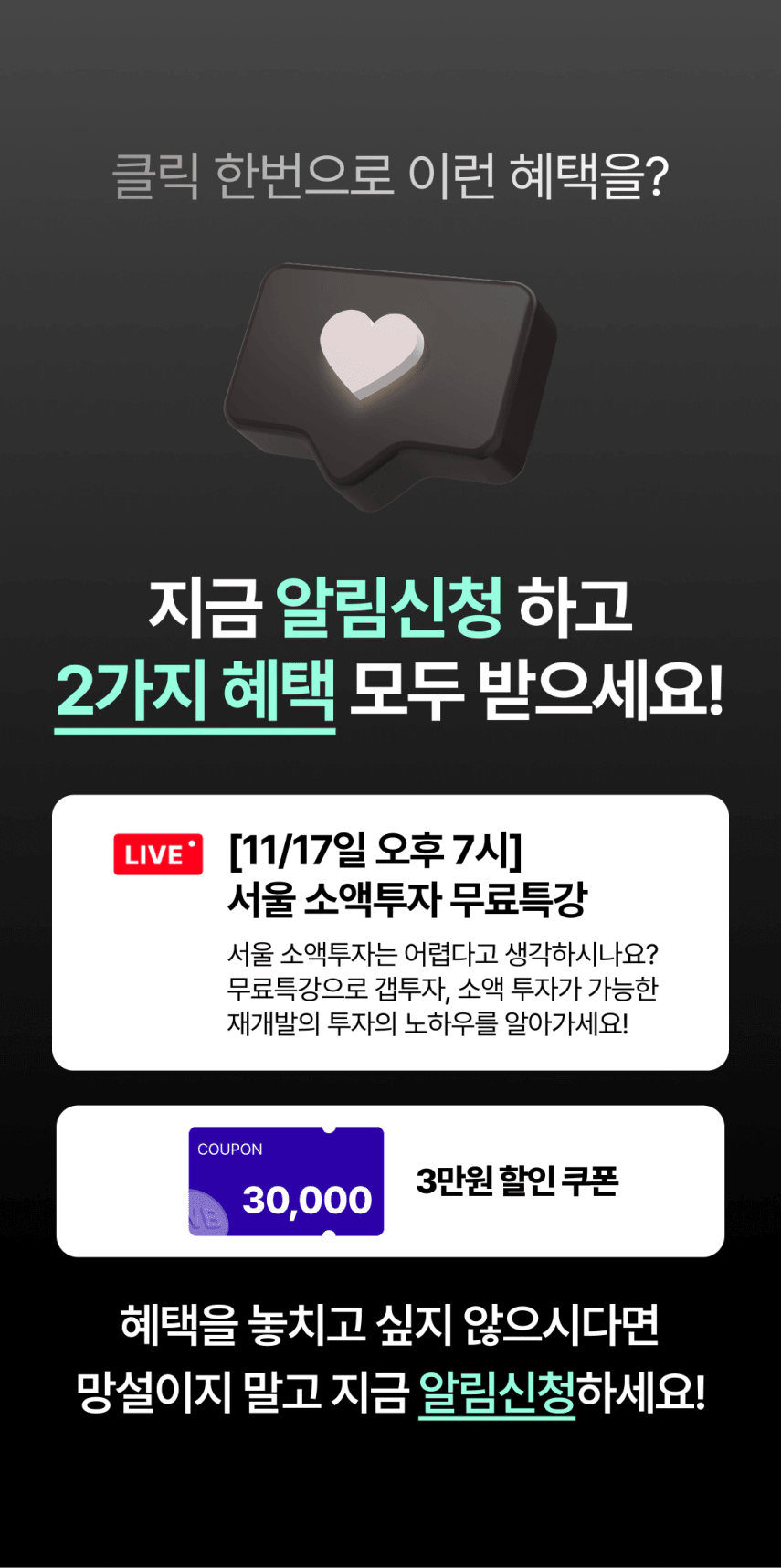 ⇢ 요즘 핫한 얼죽신! 이 방법이라면 소액으로 서울 신축... [보러가기]