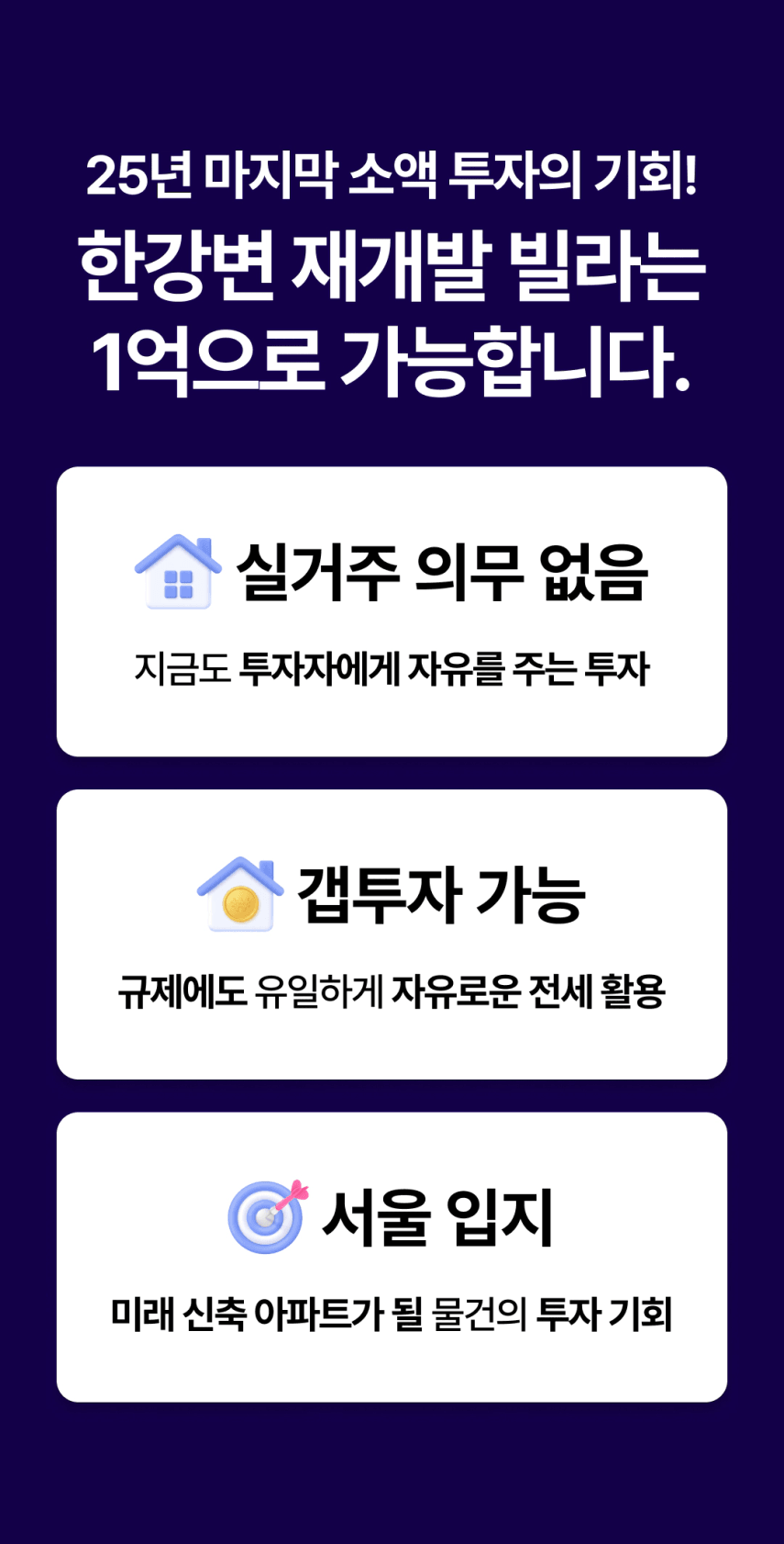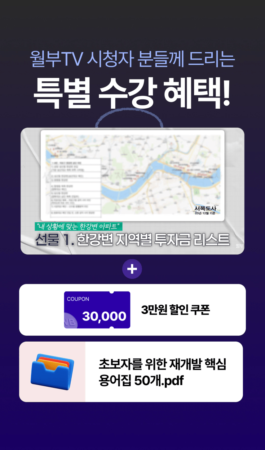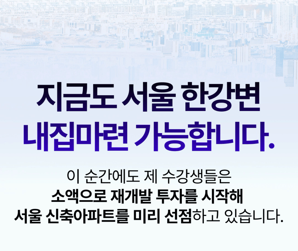 - 서울 중심부 재개발 6채 보유하고 있으며 그 중 한강변 4채 보유중입니다.