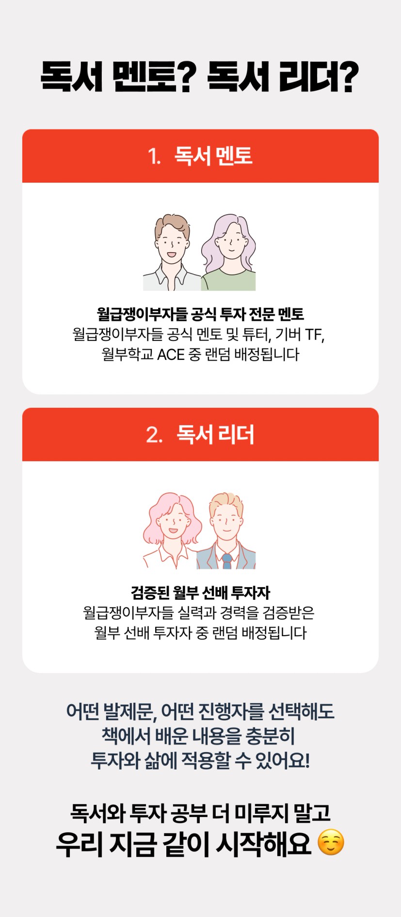 그래서 그냥 순간적으로 흥미를 돋울 수 있는 코인으로 벼락 부자되어 퇴직한 누구누구 이야기, 혜택 좋은 카드, 무슨 주식이 요즘 괜찮더라 하는 일회성 정보에 대해 이야기 하게 되는데 돈버는 독서 모임 안에서는 잃지 않는 투자를 하기 위해 우리가 봐야할 것, 필요한 것, 갖춰야 할 자세에 대해 이야기 할 수 있고 시스템 투자자로 성장하기 위해 다같이 고민해보며 거기에 덧붙여 튜터님의 정리와 가이드까지 받아볼 수 있어서 진심으로 투자자만을 위한 독서모임이라는 것이 느껴져서 너무 유익했습니다.