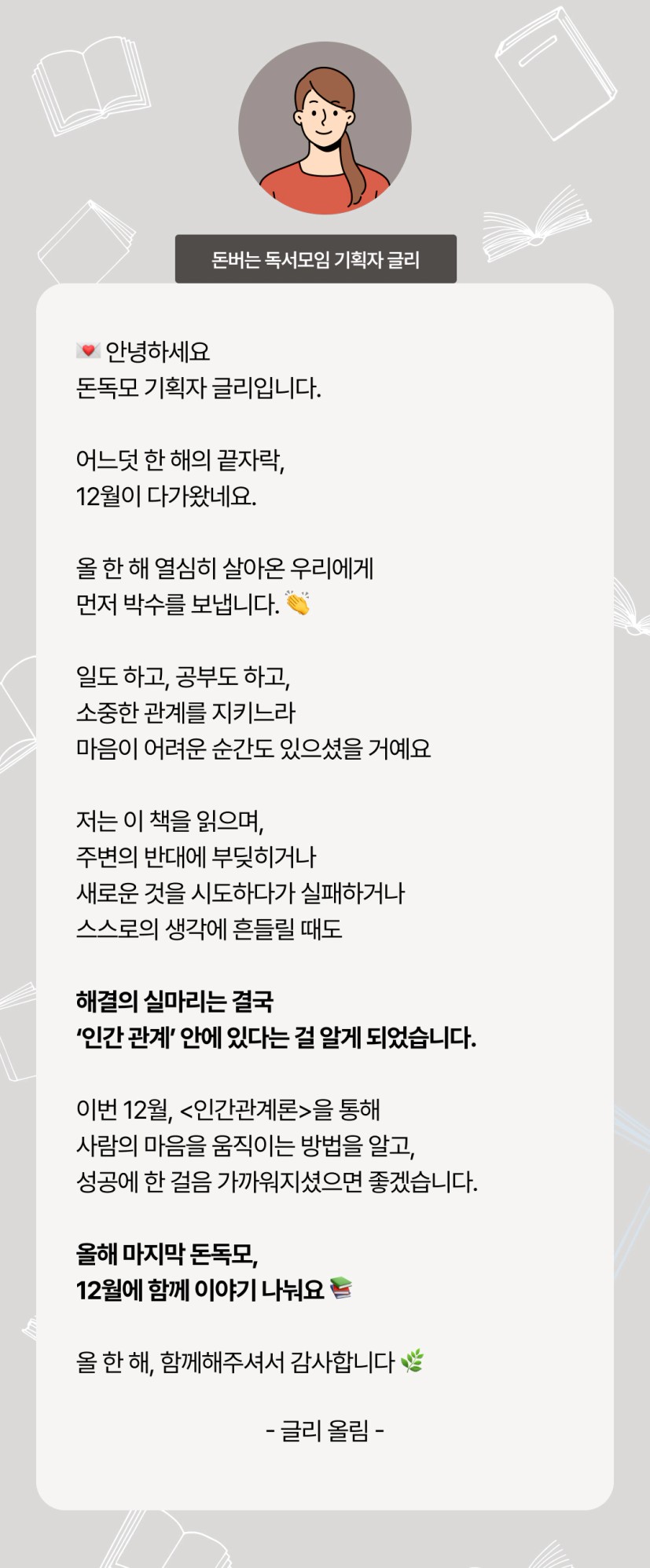 평생 1년에 책 한권도 안 읽던 사람이라 독서하는 방법을 배우고 싶어서 참여했습니다.