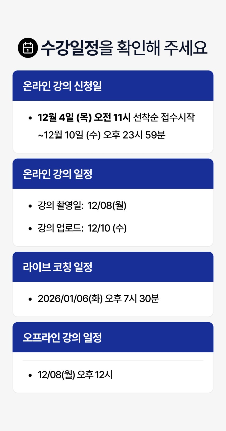 | 수강 기간 | 28일 (강의시작일 2025-12-10 ~ ) |