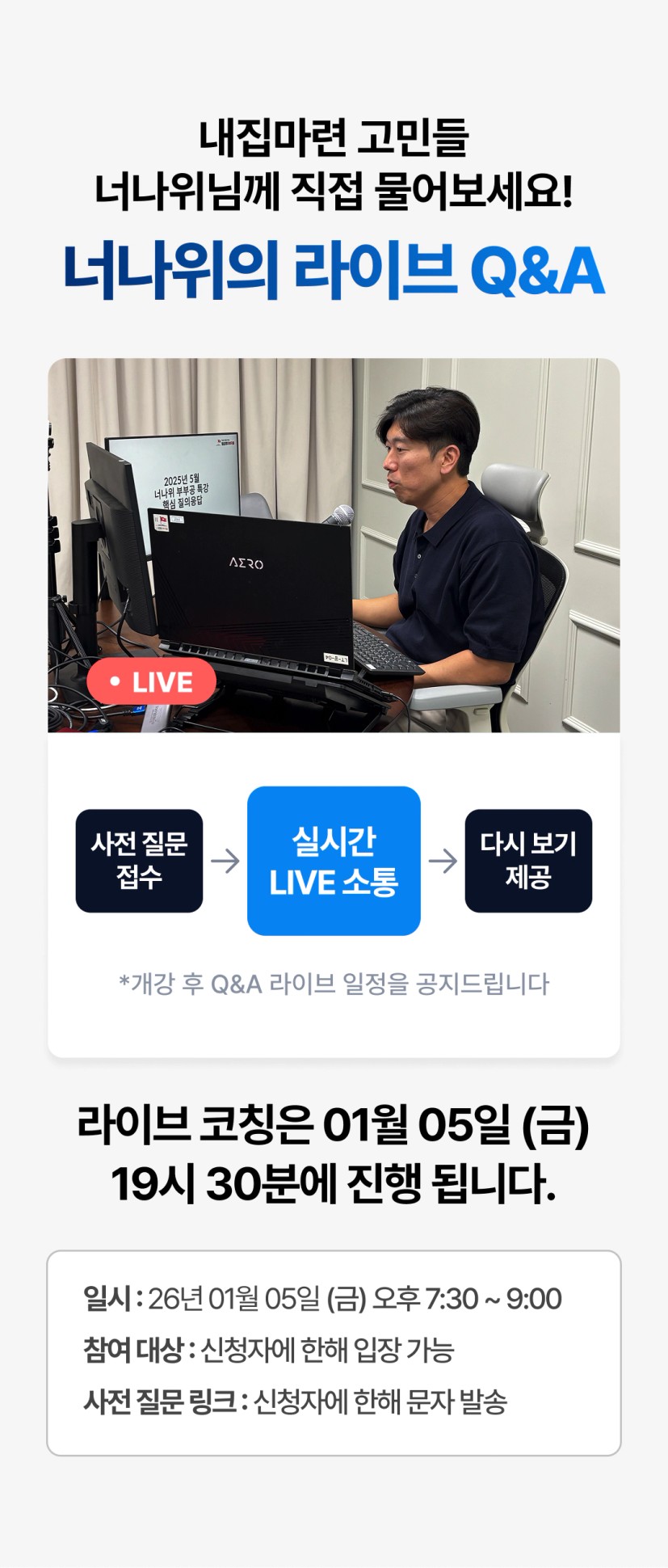그래서 저는 5년, 10년 후에도 ‘자산 가치도 있으면서 살기 좋은 내 집’을 갖는 전략을 알려드리는 것을 목표로 합니다.