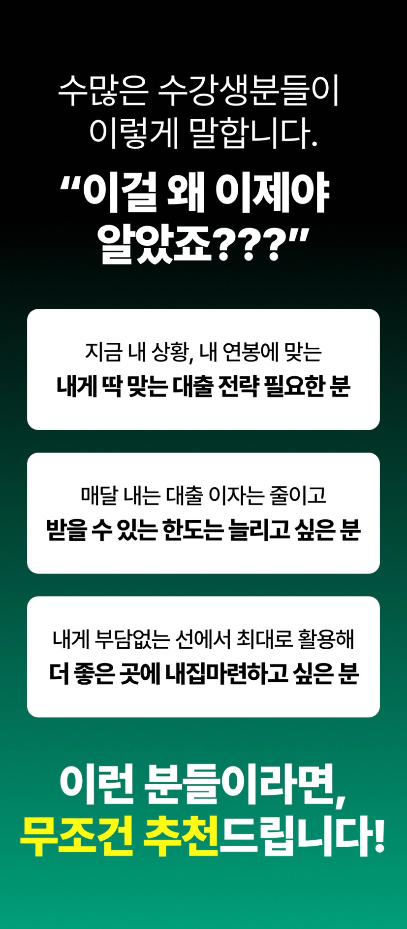 오직 현장에서 실제 실행되고 적용되는 현재 시점의 실전 대출 사례만이