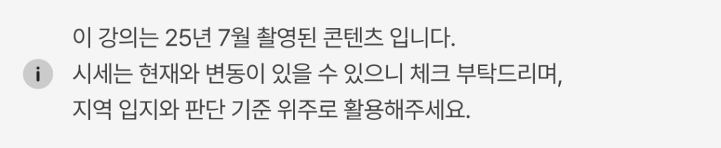 줴러미 튜터님과 함께한 실전임장 클래스 후기입니다.분위기 임장과 단지 임장 – 연식별·평형별 구분법 + 실전 매물 판단까지 완벽 정리!2기때도 광클에 성공했으나 개인적인 사고로 취소를 하고너무 너무 아쉬운 마음에 한달동안 속앓이를 했었던 실전임장클래스를 3기에는 성공하여 듣게 되었습니다!!어느순간부터 임장을 하고 와도 평면적인 느낌만 남았는데,이번 실전임장클래스를 통해 임장을 끝낸 후 3D같은 입체적인 시각으로동네를 이해할 수 있었던 시간이었습니다.개인적으로 이번 수업에서 가장 인상 깊었던 부분은‘매물 내부를 어떻게 볼 것인가’에 대한 실전 기준을 배운 것입니다.매물을 봐도 살림살이들이 들어차있는 공간들의 구분도 잘 되지 않고,쉽사리 남의 물건이 있는 부분들을 건들까 얼른 둘러보기만 하며리모델링이 되어 있으면 막연히 “깨끗하네”, 안 되어 있으면 “수리해야겠네” 정도로만 생각했는데,이번 수업을 통해 '수리의 유무'가 아니라, '수리의 범위와 질'을 짧은 시간 안에 어떻게 판단할 수 있는지기준을 딱 잡을 수 있었습니다.전체 수리 vs 부분 수리수리 시기 판단 요령 (몰딩, 타일, 샤시, 싱크대 상태 등 디테일 분석)실질적인 교체 비용과 공사 난이도 파악네고 포인트로 활용 가능한 항목들 정리연식별, 평형별로 적절한 네고 전략까지 세울 수 있는 시간이었습니다.긴 시간동안 모든 질문에 귀한 인사이트 아낌없이 나눠주신 줴러미 튜터님께 다시한번 진심으로 감사드리며,함께 여러 귀한 의견들을 나눠주시고 좋은 질문들 해주신 동기분들께도 감사드립니다.