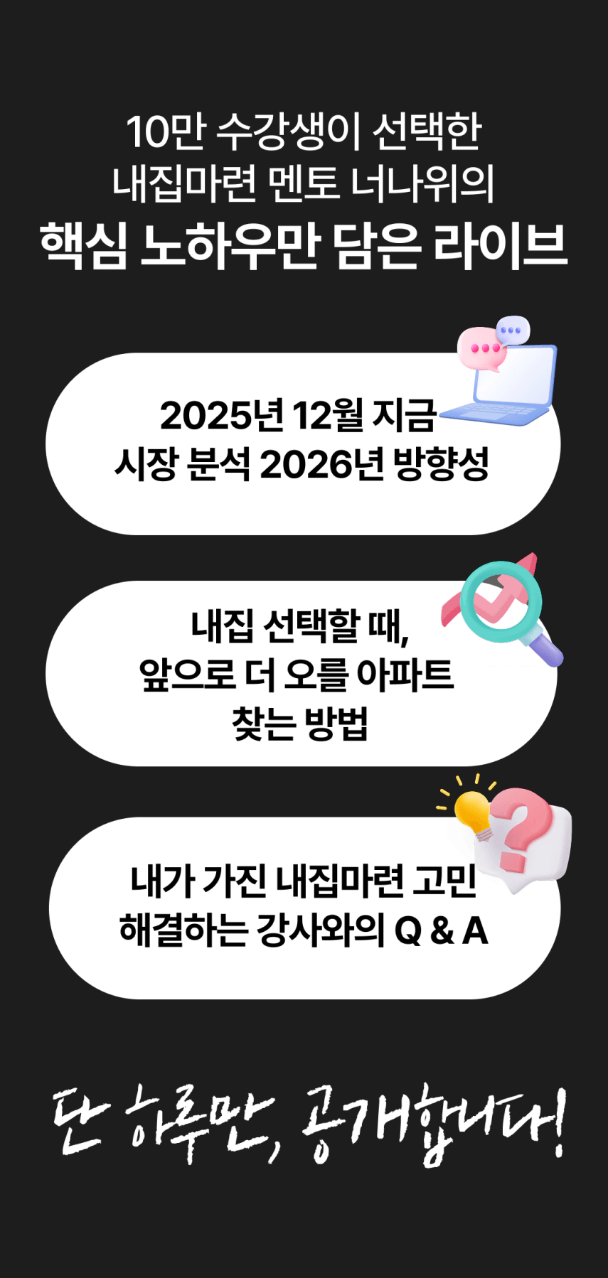 ⇢ 전국민이 내집마련 하기 전에 반드시 봐야 할 단 1개의 영상 [보러가기]