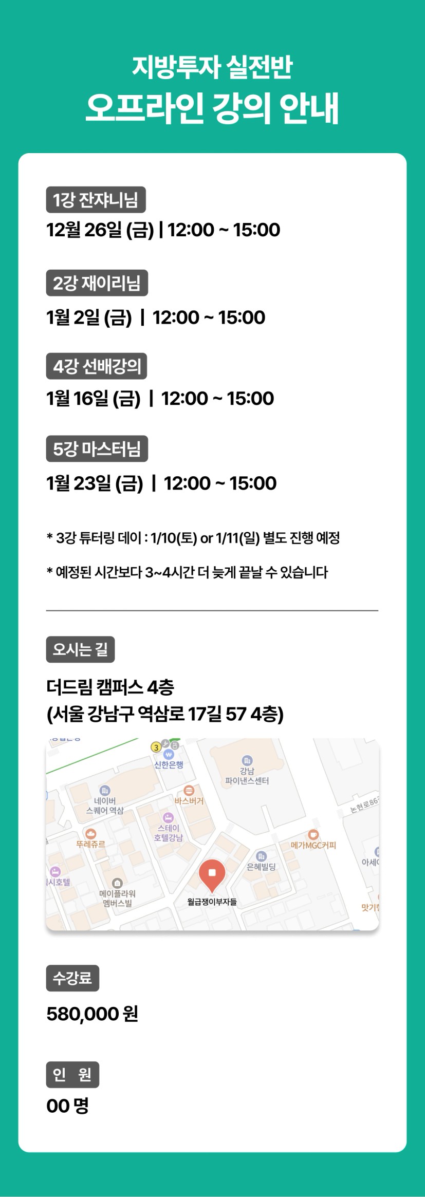 열반스쿨기초반 + 열반스쿨중급반 + 실전준비반 + 지방투자 기초반