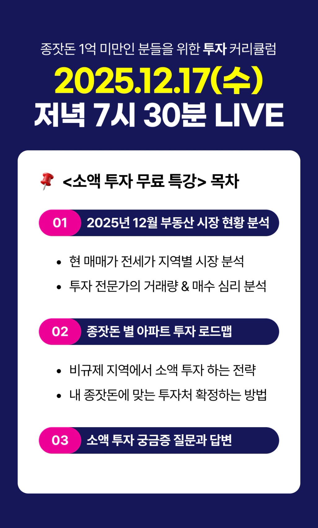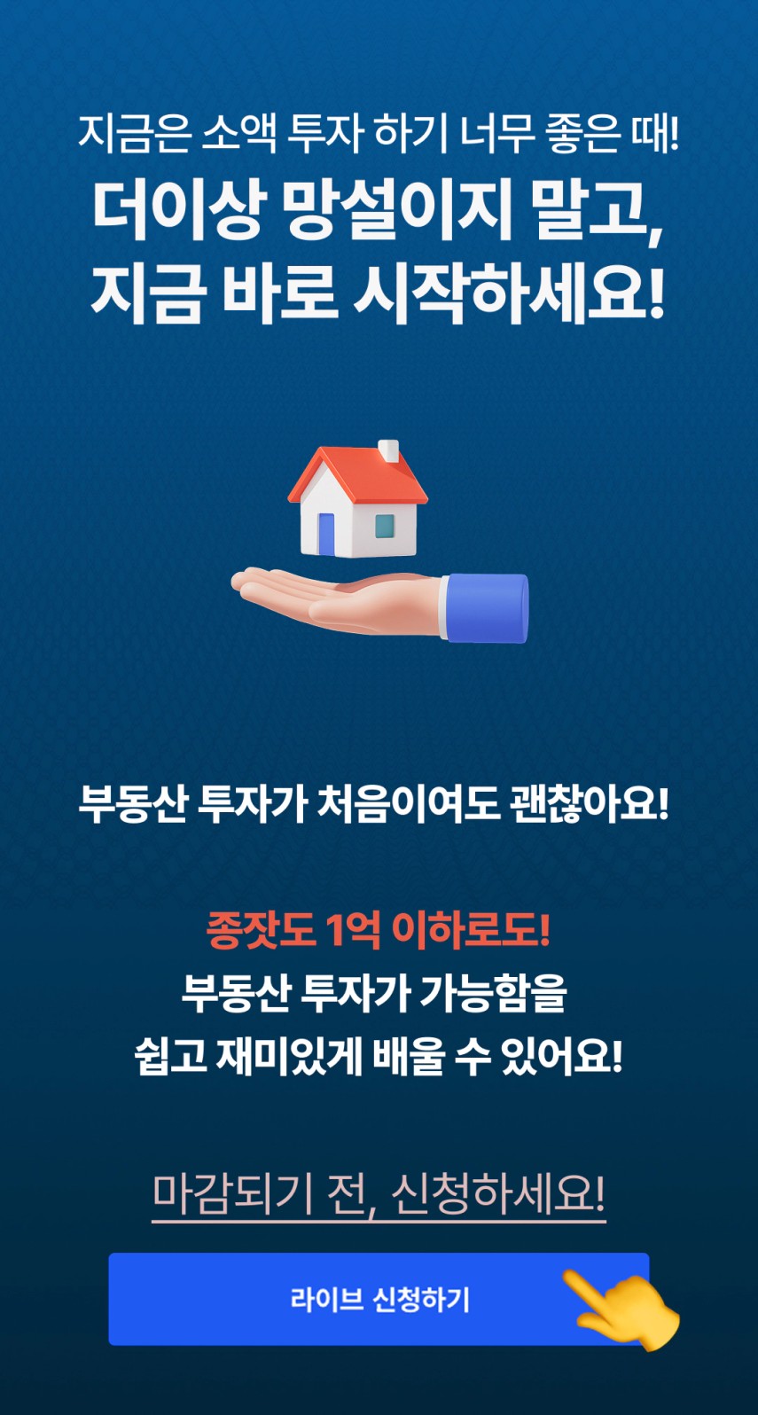 [0원 이벤트] 1억 미만 종잣돈으로 아파트 투자 하는 최고의 방법! 소액 투자 라이브