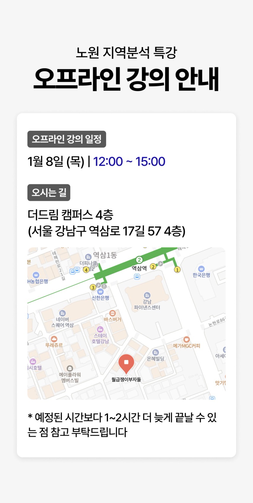 • 오프라인 강의 : 1/8(목) 12:00 ~ 15:00