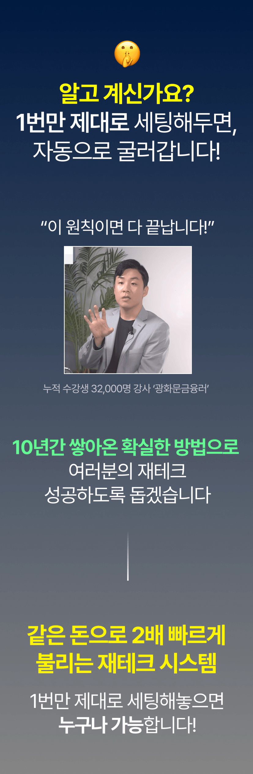 = 종잣돈을(목돈을) 안전하게 장기적으로 굴리는 투자법을 배우는 강의입니다.