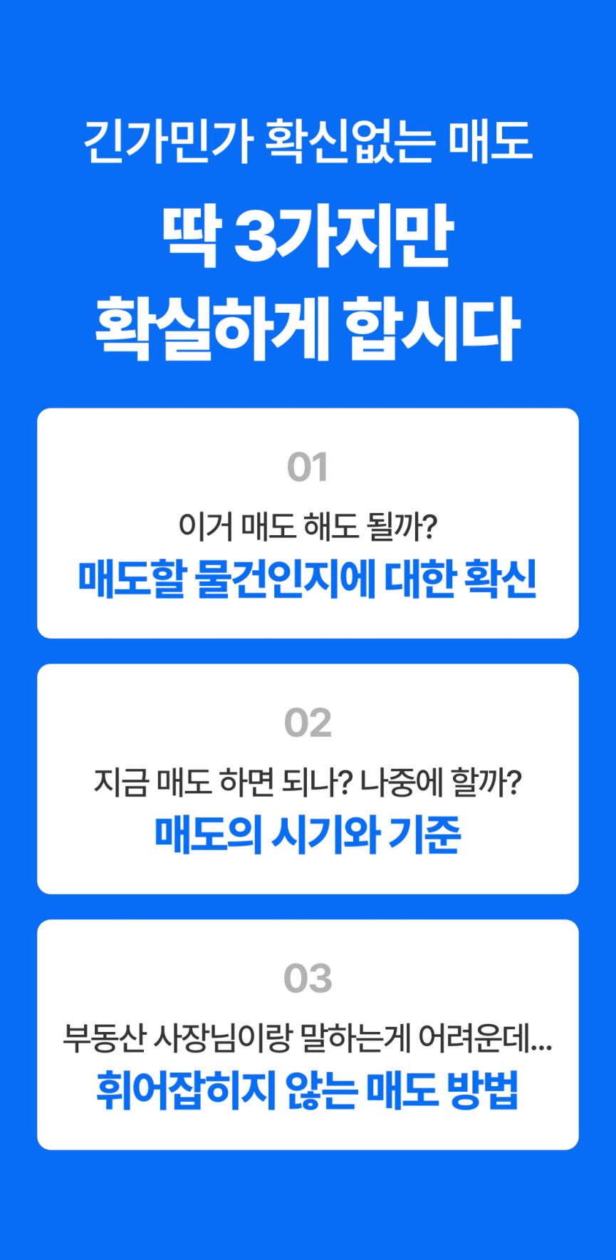 안녕하세요. 수수진입니다.오늘은 무려 10시간 가까이 이어진절대 한가하지 않은 한가해보이멘토님의매도 특강을 듣고 왔는데요.정말 강의를 듣는 내내‘이 강의 꼭 들어야겠다’라는 생각이 들 정도로꼭 매도를 앞둔 사람 뿐만 아니라투자나 내집마련을 하시는 분들이라면꼭 필요한 강의라는 생각이 들었던 것 같습니다.매도는 그저 ‘파는 행위’라고만 생각했는데오늘 이 강의를 듣고 나니매도는 결국 다음 선택을 가능하게 하는 전략이라는생각이 들었던 하루였습니다.매도 앞에서 사람이 흔들리는 이유는늘 비슷하잖아요.저 또한 마찬가지였습니다.사실 수개월부터 매도 물건을 내놓고매달 플랜만 수십장을 적어두고 머릿속으로시뮬레이션만 그려가며 계속해서고민만 했던 것 같아요.‘지금 팔면 너무 이른가?’‘조금 더 기다리면 더 오르지 않을까?’‘팔고 나서 오르는 거 아니야?’‘안 팔리면 어쩌지?’저도 솔직히 매도를 생각하며다른 것보다도 마음이 먼저 흔들렸어요.근데 오늘 강의를 들으면서너무 공감되었던 것 같습니다.결국 제가 흔들리고 있던 건 시장의 탓이 아니라제 안에 ‘기준’이 없어서였습니다.보이멘토님은 매도에서 가장 핵심이 되는기준을 몇 가지 축으로 계속 정리해주셨는데그걸 들으면서 느낀 게 있었습니다.“주변 말에 휩쓸리는 매도는 결국남의 결론을 내 손으로 실행하다는 거고,그 과정에서 가장 치명적인 건골든타임을 내가 놓치게 된다는 거에요.특히 인상깊었던 건, ‘지금 당장 파세요’라는정답을 주는 강의가 아니었다는 점이에요.오히려 각자 상황에 따라결정이 달라질 수 밖에 없다는 전제하에그럼에도 흔들리지 않게 결정할 수 있는방향을 잡아주셨습니다.수 많은 실전 사례들을 보여주시며어떤 상황에서 어떻게 행동하고 판단해야할지그리고 그 행동 하나하나까지도일러주셨던 강의였습니다.결국 오늘 제가 얻은 건 정보뿐만 아니라어떤 시장이 와도 다시 꺼낼 볼 수 있는매도 매뉴얼의 뼈대같은 느낌이었습니다.강의 내내 계속 머리에 남았던 메세지가 있었습니다.“이렇게 많이 일러줘도 아는 걸로 끝내면아무것도 바뀌지 않아요.매도는 결국 행동까지 가야합니다.”멘토님이 일러주신 사례들에서 보았던과정들은 그냥 팔기가 아니라팔고 나서 내 자산이 어디로 이동할지까지연결되어야 의미가 생기는 거더라구요.저는 오늘 이 포인트가 크게 와닿았던 것 같습니다.매도를 잘한다는 건 비싸게 파는 기술만이 아니라내가 원하는 다음 자산, 다음 삶을 분명히 하고그 목적에 맞게 현실을 준비하고결국 움직일 수 있게 만드는 과정이라는 점이요.특히 인상적이었던 건매도는 결국 한 명만 오면 된다는 관점이었어요.시장이 뜨겁든 조용하든 결국내 집을 사줄 단 한 사람을 만나게 행동하는 게 핵심이고그 과정에서 내가 해야 할 준비-확장-매력-결정의흐름이 생기니 막연한 불안이‘할 일’로 바뀌는느낌이 들었습니다.매도는 원래 불안이 커서 생각만 많아지고멈추게 되는 영역이었는데 오늘은그 불안을 체크리스트도 바뀌어서손에 잡히게 만들어주셨던 수업이었습니다.지금은 아니더라도 집을 매수하면 언젠가 반드시결정해야하는 매도를 결정해야하는 순간이 오잖아요.그때 감으로 팔면 흔들리고기준으로 팔면 다음 선택이 열린다는말씀 꼭 기억하고 싶었습니다.저는 오늘 강의를 듣고매도를 언젠가 해야 할 숙제가 아니라내가 원하는 방향으로자산을 이동시키는 기술로 다시 보게 된 것 같습니다.매도를 앞두고 있거나매도 생각만 하면 머리가 복잡해지는 분이라면이 강의는 정말 추천드리고 싶습니다비밀 노하우가 아니라내 상황에 맞는 결정을 스스로내릴 수 있게 만들어주는 강의였습니다.10시간이 절대 길지 않은 오히려‘이걸 이제라도 정리해서 다행이다’싶은 하루였습니다.정말 오랜 시간동안 한 명씩 이야기 들어주시며애써주신 보이멘토님께진심으로 너무 감사드립니다🤍