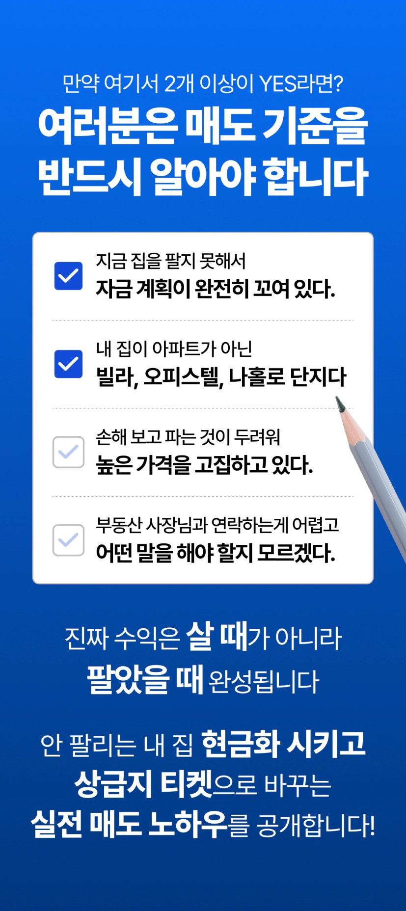 주거형 부동산 중 수요가 적은 부동산의 매도 방법도 강의를 통해서 들어보시고, 내 상황에 맞게 적용해 보실수 있을꺼에요. 강의에서 뵙도록 해요 ^^
