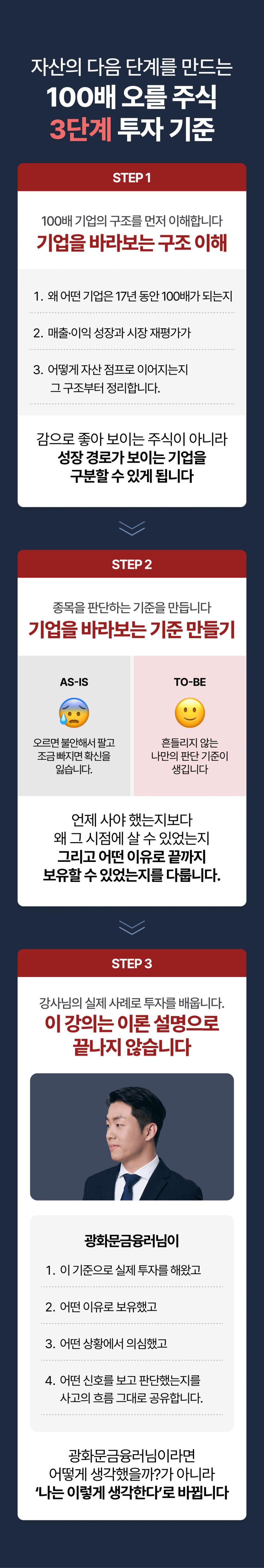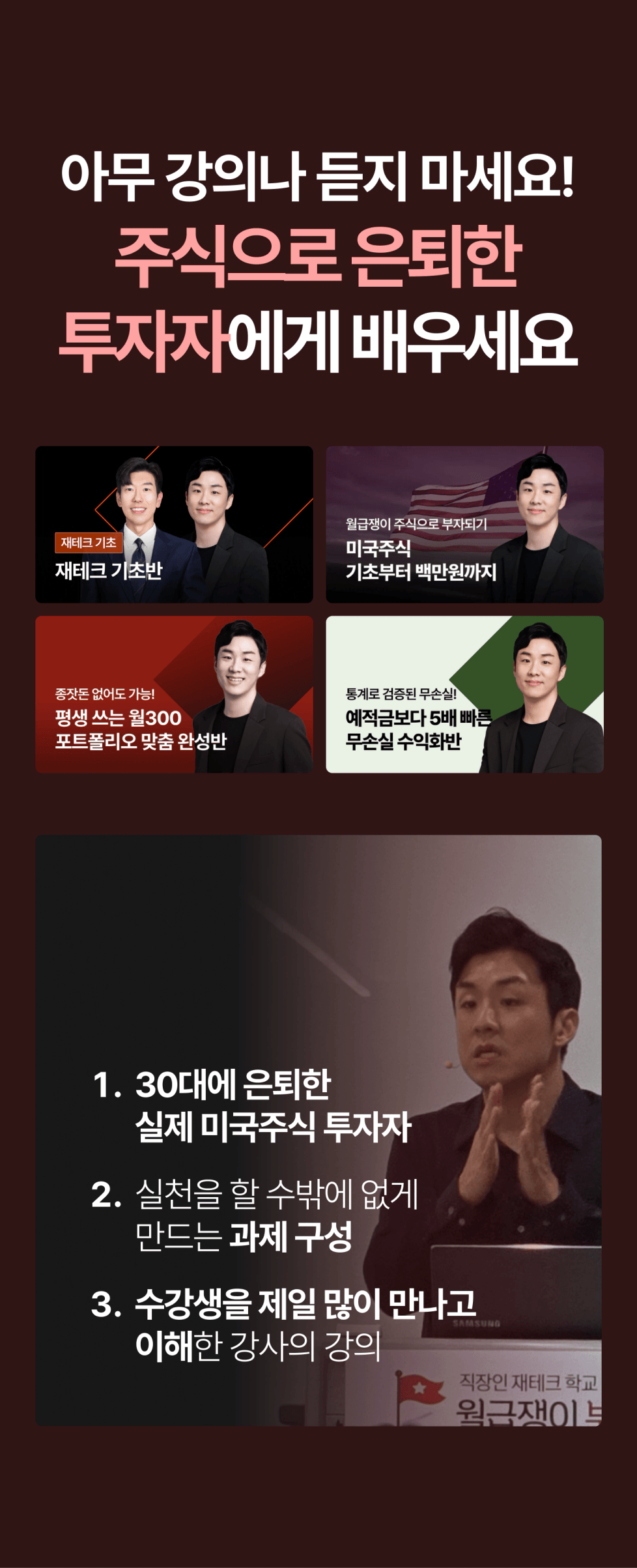 비교적 큰 목돈(목돈의 기준은 내 기준으로 3년동안 모을 수 있는 돈을 기준으로 합니다)을 운용할 때, 최대한 손실 없이 운용할 수 있는 투자법을 배우게 됩니다. '스펙주'라고 하는 특정 주식에 대한 지식을 배우게 되는데, 역시 기초 내용이 없다면 강의를 100% 소화하시기에 어려울 수 있습니다.