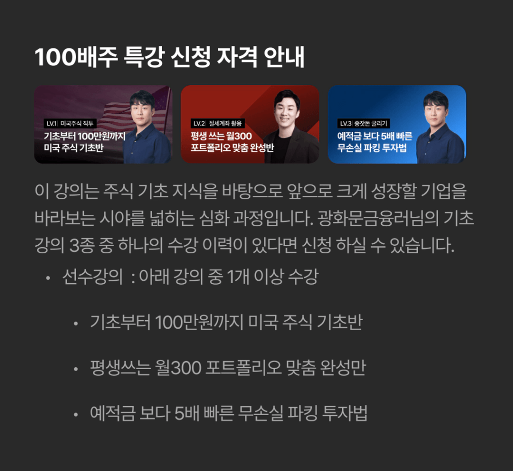 '나는 주식 초보다'라고 하시면 고민 없이 [미국주식 기초부터 백만원까지] 강의부터 수강하시면 되겠습니다!