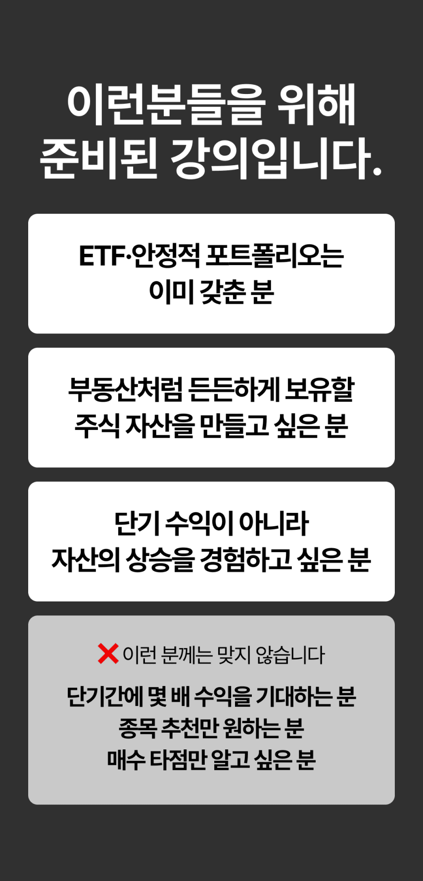 = 종잣돈을(목돈을) 안전하게 장기적으로 굴리는 투자법을 배우는 강의입니다.